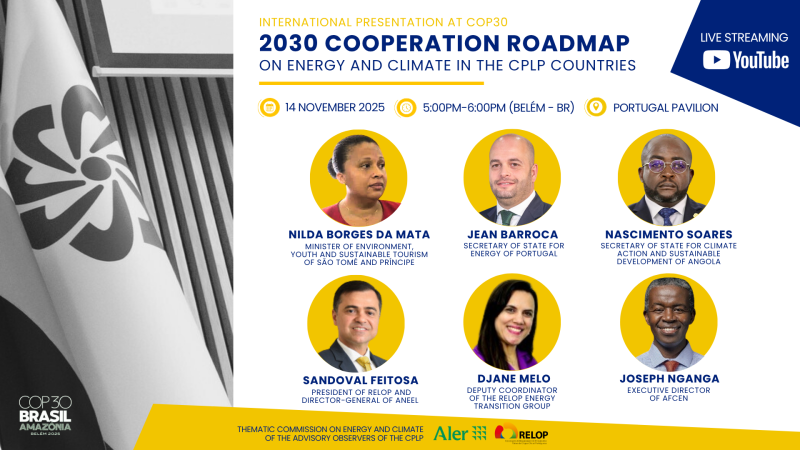 The Thematic Commission on Energy and Climate of the CPLP Consultative Observers, coordinated by ALER and sub-coordinated by RELOP, will take part in COP30, in Belém do Pará (Brazil), to present the 2030 Cooperation on Energy and Climate in the CPLP Countries, launched in Mozambique during the CPLP Energy and Climate Week.